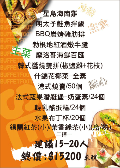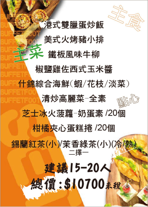 套餐方案(人數15-20人)套餐優惠價不與其他活動合併