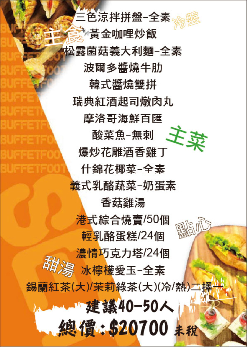 套餐方案(人數40-50人)套餐優惠價不與其他活動合併